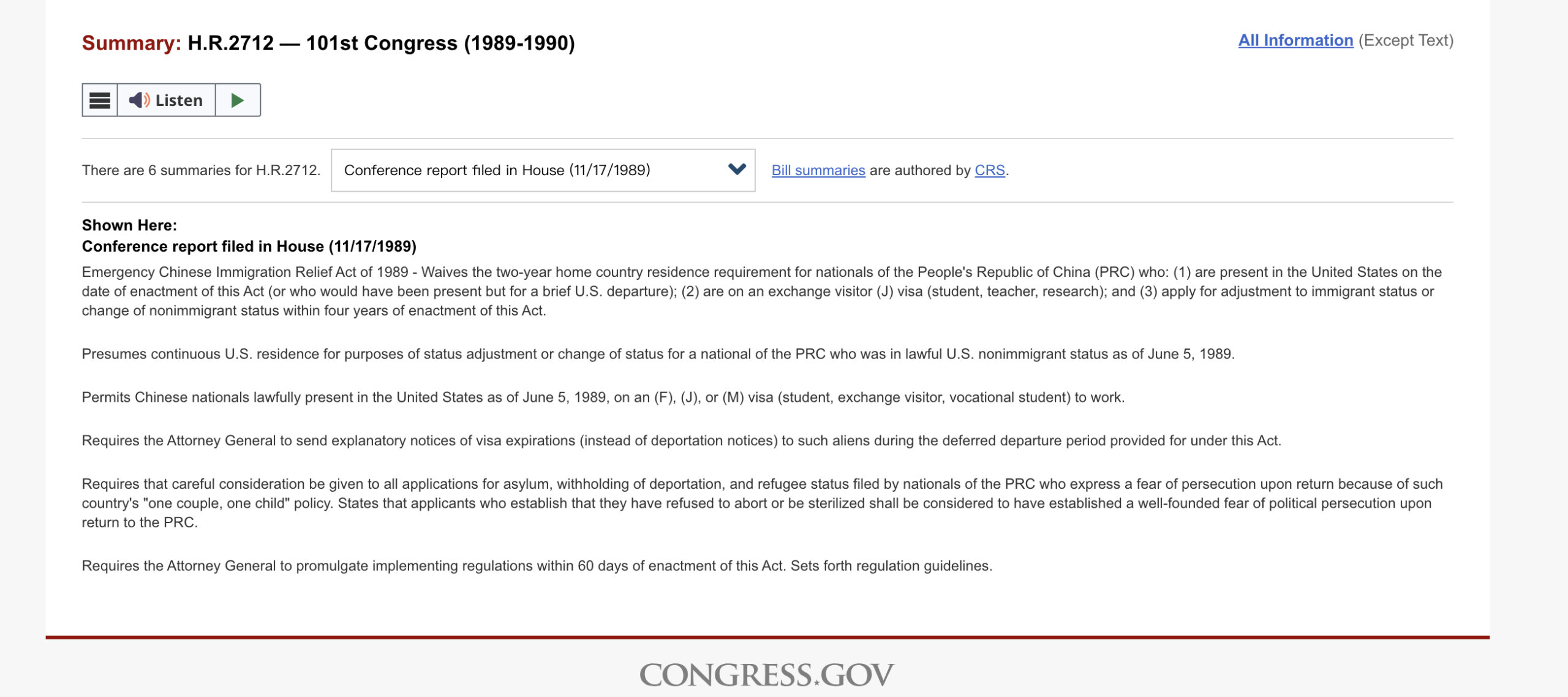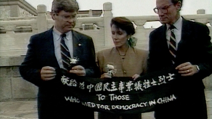 1989年6月21日,天安门运动后,在众议院年资尚浅的佩洛西协助主导,提出“1989年紧急中国移民救济法案”(Emergency Chinese Immigration Relief Act of 1989, H.R.2712),允许约3万2千名持有J-1签证的中国学者在签证过期后,无须回到中国两年,而能继续留在美国,且让他们在返回中国时免于可能的迫害,俗称“佩洛西法案”。